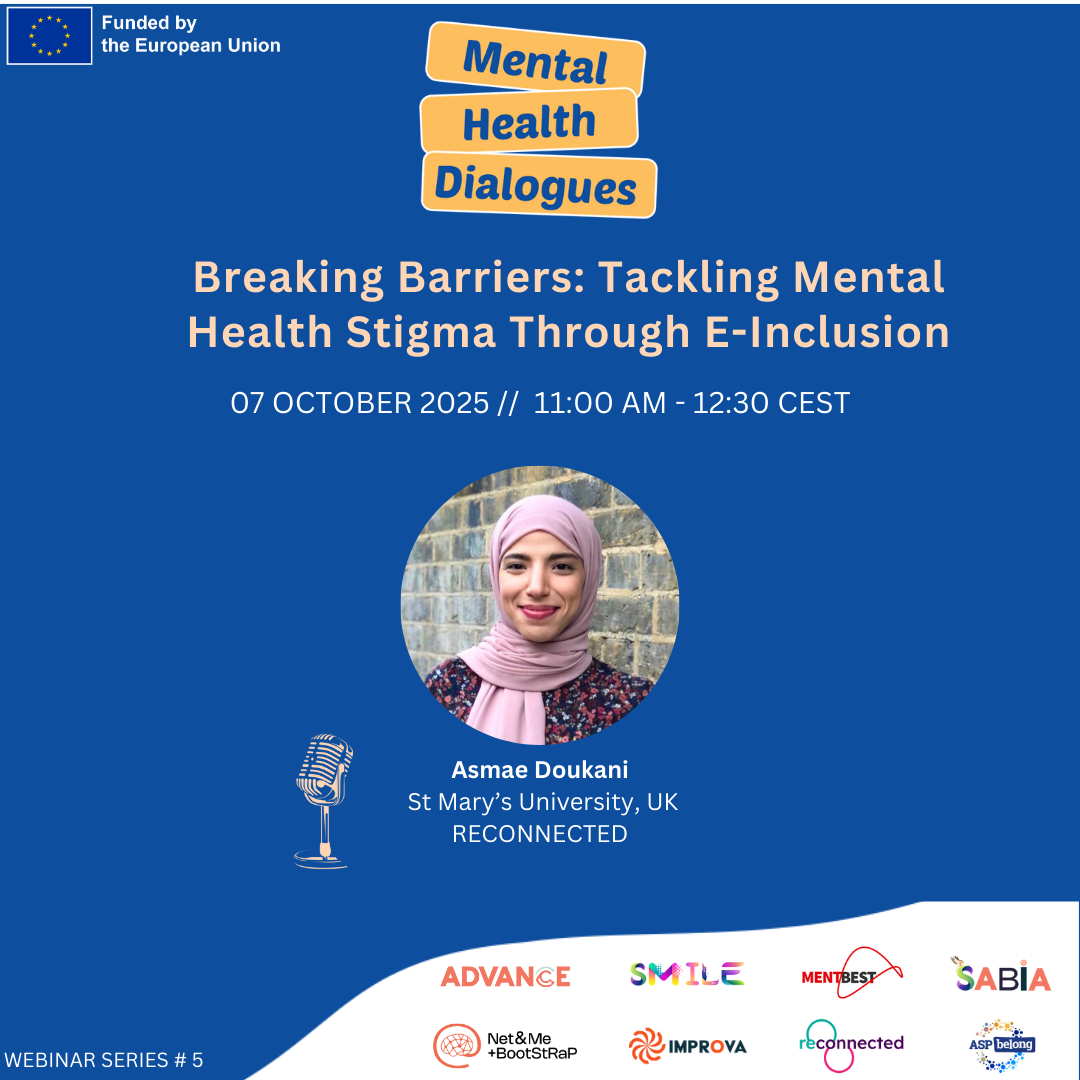 We (RECONNECTED project) will be hosting the next Mental Health Dialogues webinar, which is scheduled for 7th of October at 11-12.30 CET under the topic: Breaking Barriers: Tackling Mental Health Stigma Through E-Inclusion.