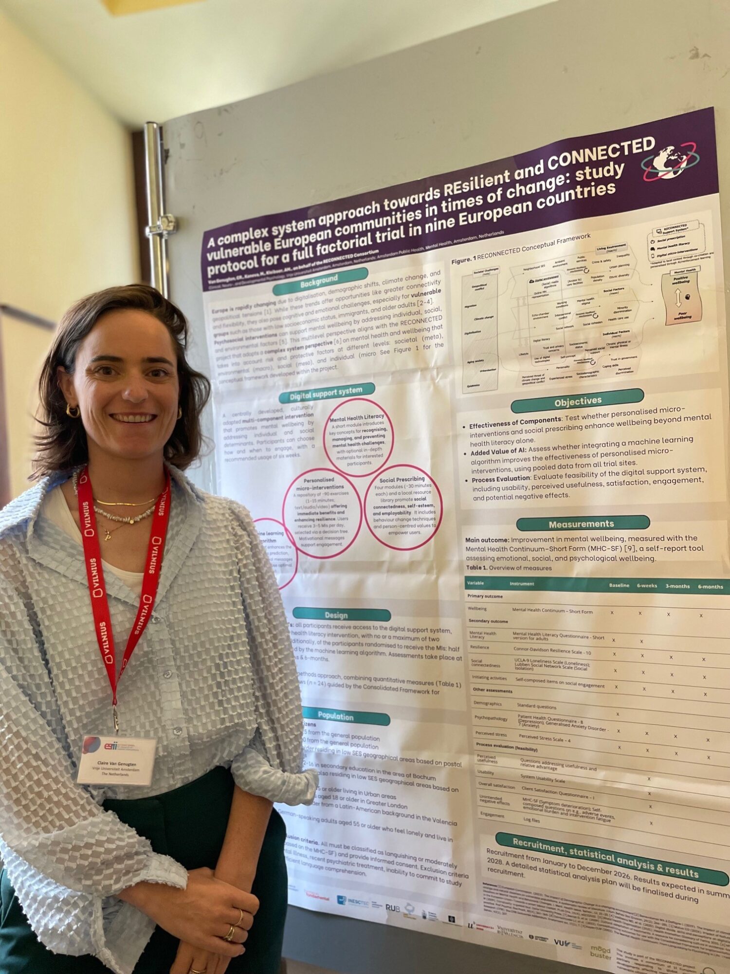 At ESRII 2025, the RECONNECTED Project was represented by Claire van Genugten, who played a leading role in drafting the generic study protocol for our upcoming randomized factorial trial. Claire also presented the poster at the conference and we are thrilled to share that her excellent work was recognized with the ESRII 2025 Best Poster Award!